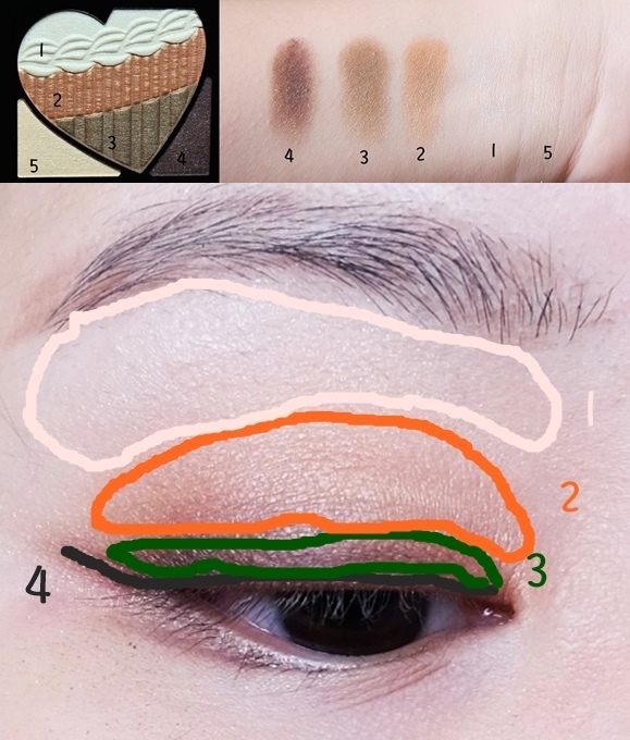 我的畫法就跟外盒的教學一樣 沒什麼特別的XD 先畫2當眼窩色 再把3畫再眼褶內